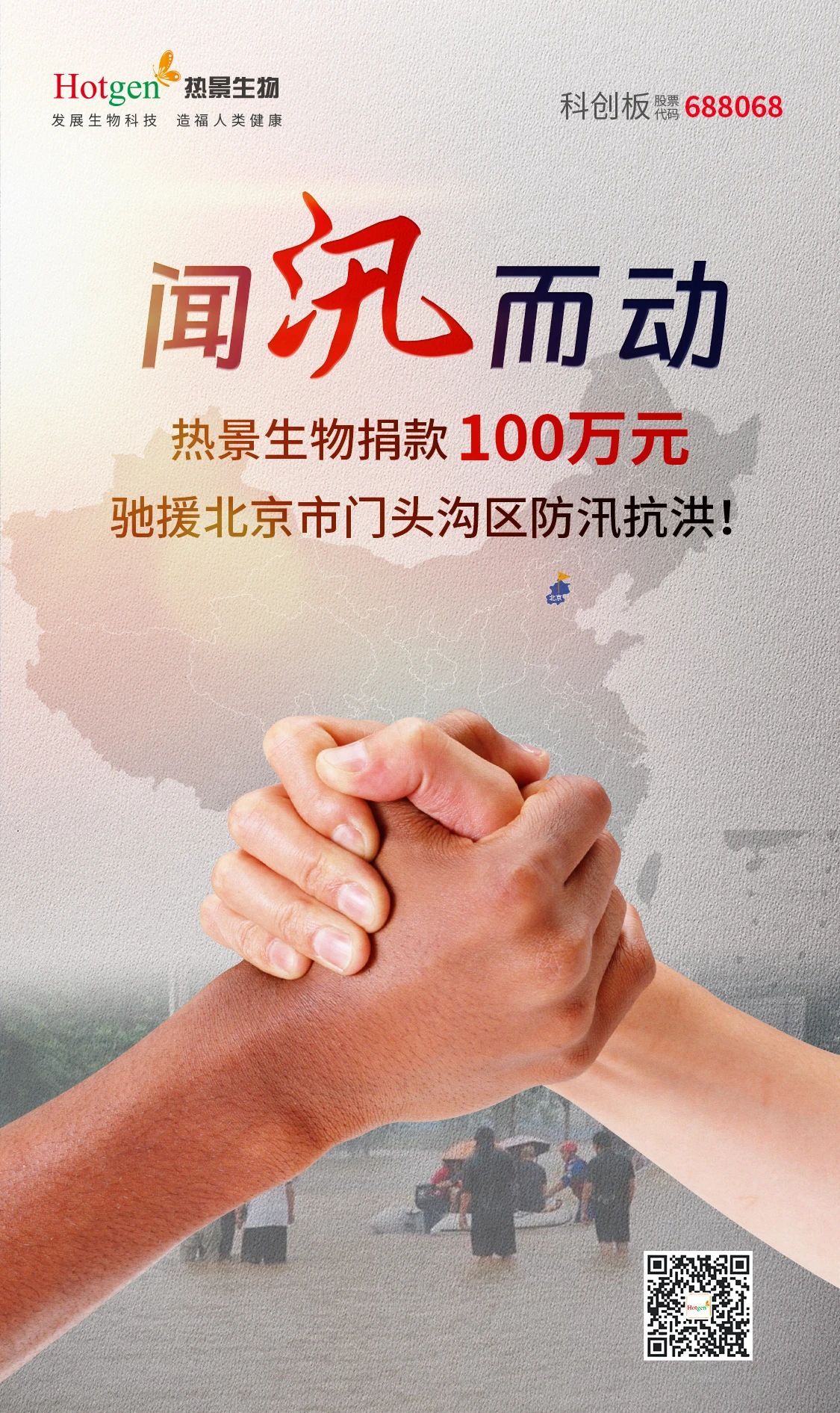 熱景生物一直密切關(guān)注著汛情救援進(jìn)展,主動(dòng)聯(lián)系相關(guān)部門提供支援幫助,并向北京市門頭溝區(qū)紅十字會(huì)捐贈(zèng)100萬(wàn)元防汛抗洪資金,助力當(dāng)?shù)卣蜕鐣?huì)力量抗擊災(zāi)情。